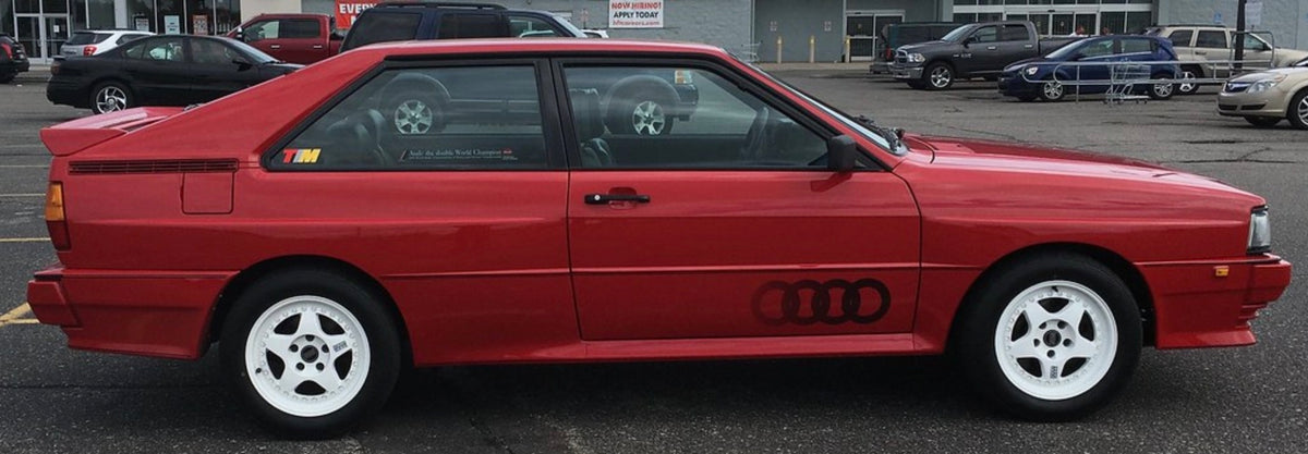 The car is running but not perfectly (more later) so I have been taking every opportunity to drive it and pose around in it. Took it to the post office: A cars and coffee or two: Parked in in the driveway: and at the showroom: I even parked it outside the local Audi dealer: This really is the key to happiness. Paul Eddleston-BRAIDusa & Team Illuminata + 0 Votes85 UR Quattro Needs Some Tires